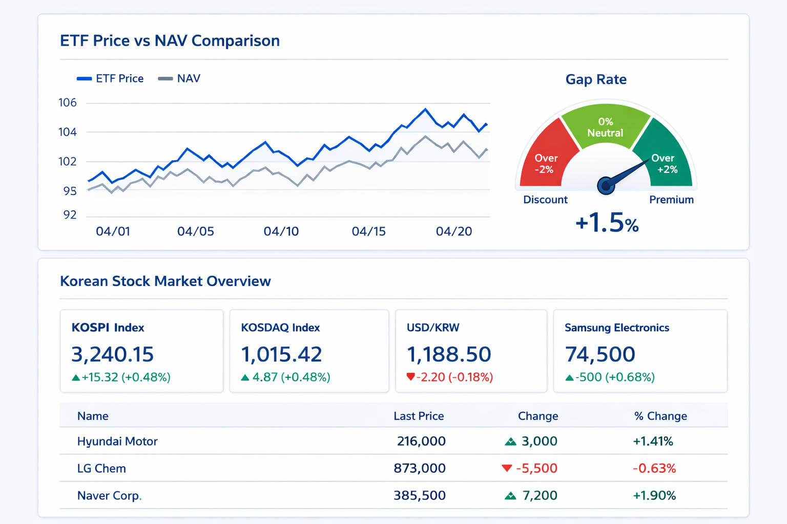 | 괴리율 | (시장가격 - NAV) ÷ NAV × 100 | ETF 상세 페이지 |